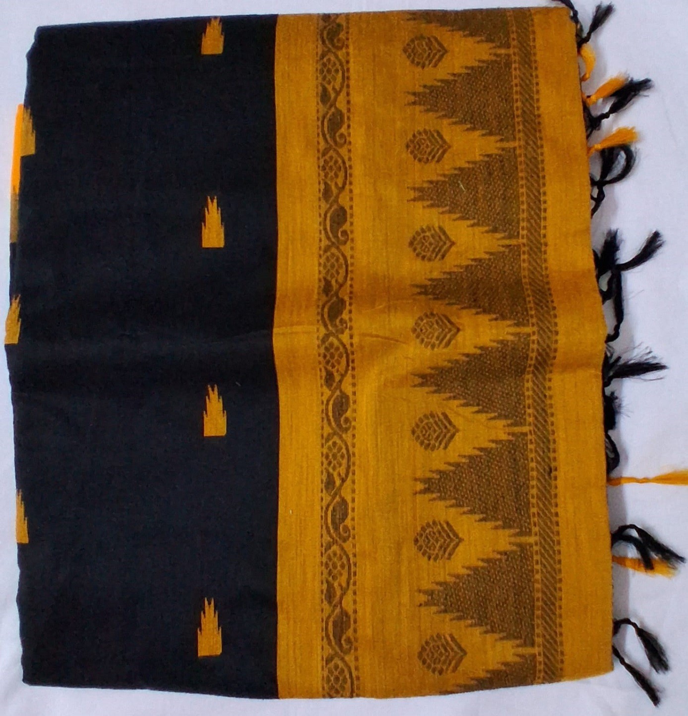 Experience comfort and style with our Artisan Pure Cotton Butta Saree. Elegant black color, perfect for any occasion. Shop this handcrafted beauty, complete wit