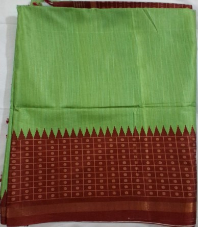 Drape yourself in elegance with this plain green Raw Silk Saree from VSK Home Market. Includes a matching blouse piece. Shop now for a timeless look