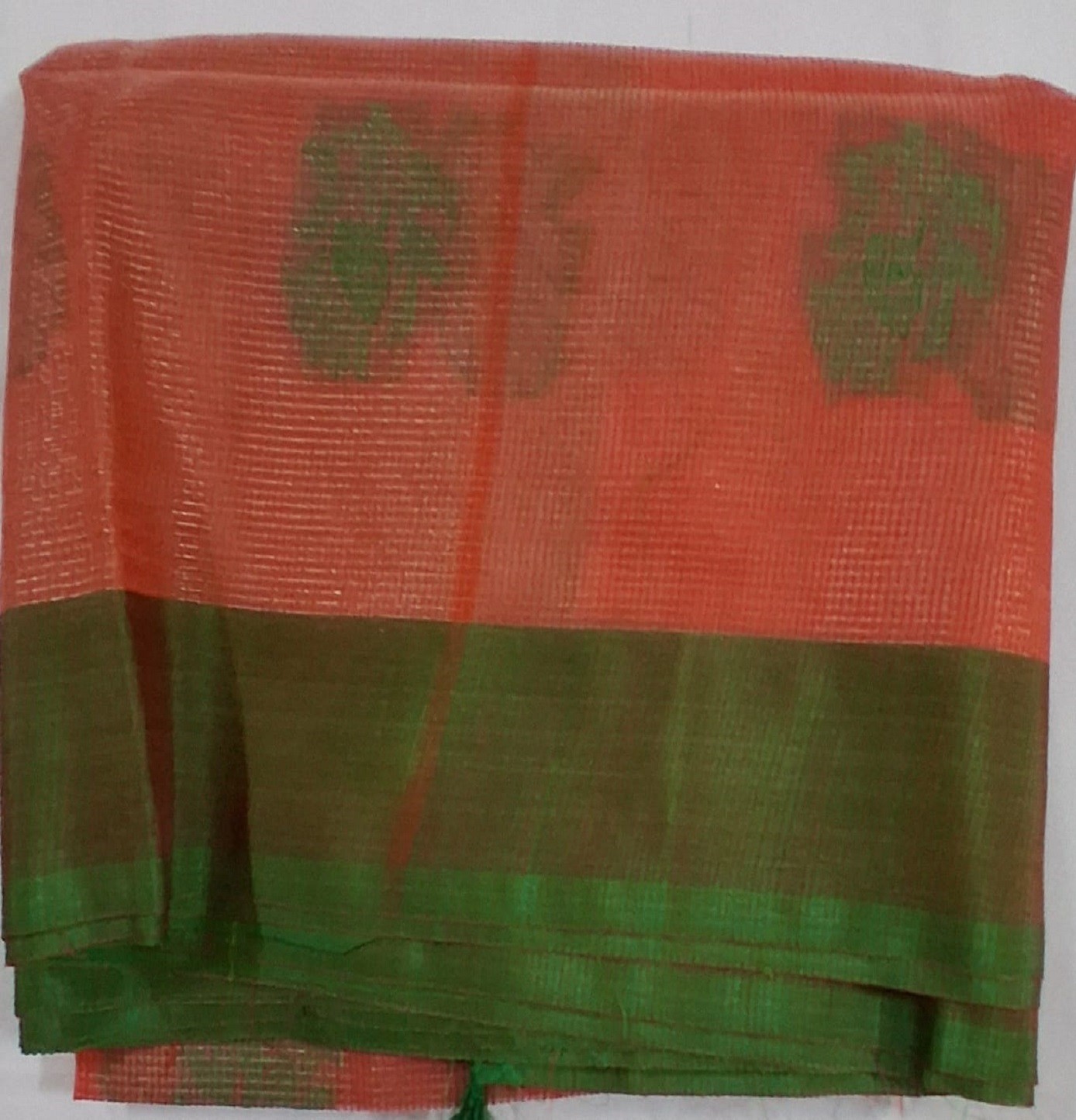 Elevate your wardrobe with a stunning orange Kada Cotton Saree. This professional classic from VSK Home Market comes complete with an attached blouse.