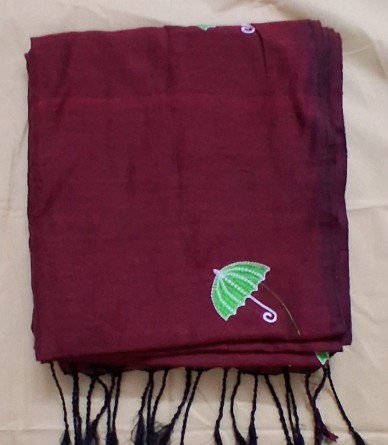 Discover luxury Maroon Colour Khadi Cotton Saree with detailed embroidery work. Perfect for festive occasions. Buy online now from VSK Home Market for the best