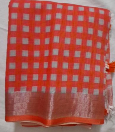 Elevate your everyday style with our Orange Check Semi Cotton Saree. Enjoy the comfort of semi cotton with a stunning digital print. Includes a blouse piece.