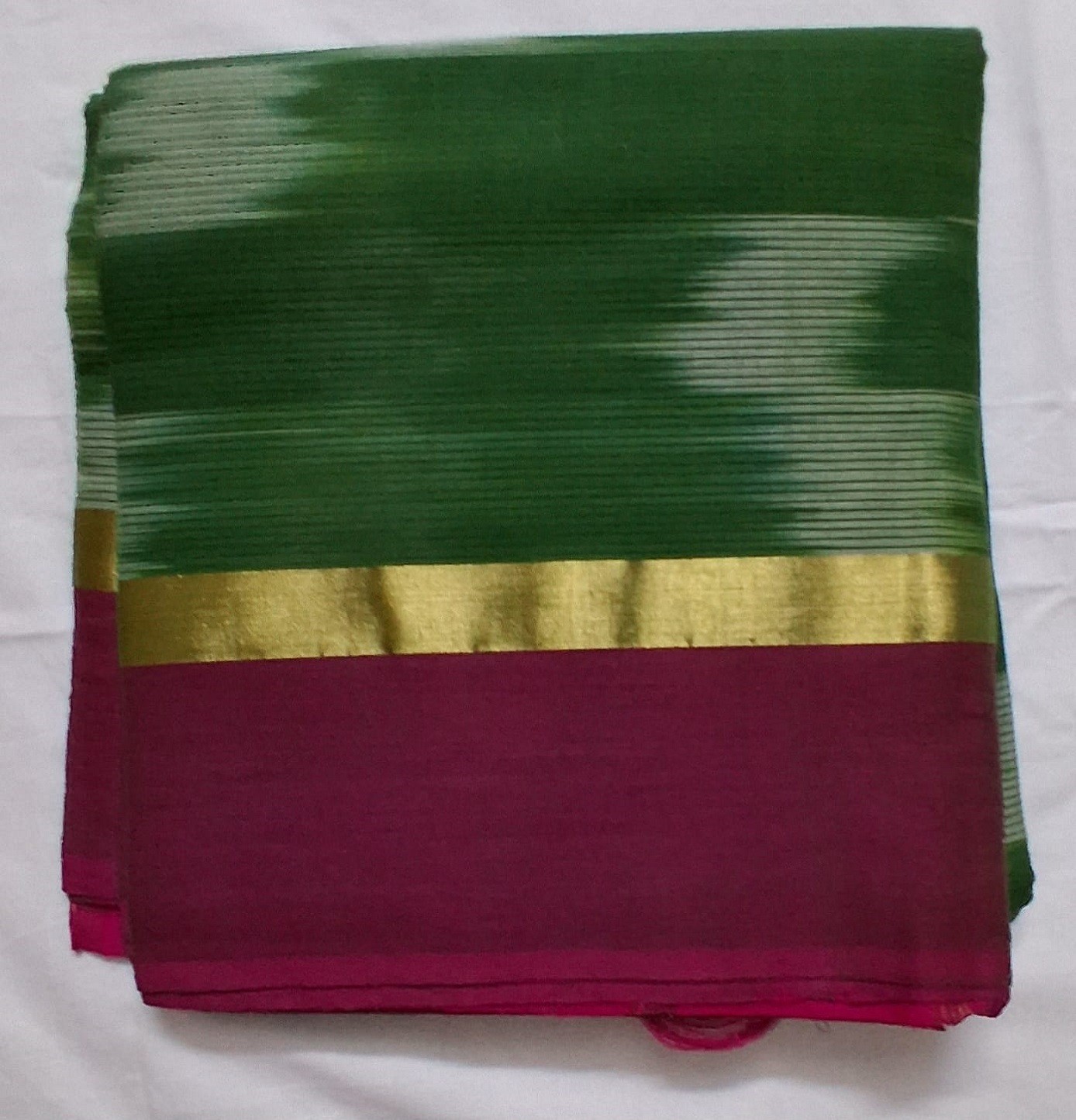 To maintain the pristine condition of this pure cotton ikat saree, we recommend a gentle cold water hand wash using a mild liquid detergent. Avoid soaking the garment for extended periods to protect the integrity of the natural green dyes and the structural strength of the cotton fibers. Always dry the saree in a shaded area away from direct sunlight to prevent any color fading over time. Ironing should be done on a medium heat setting while the fabric is slightly damp for the best results.