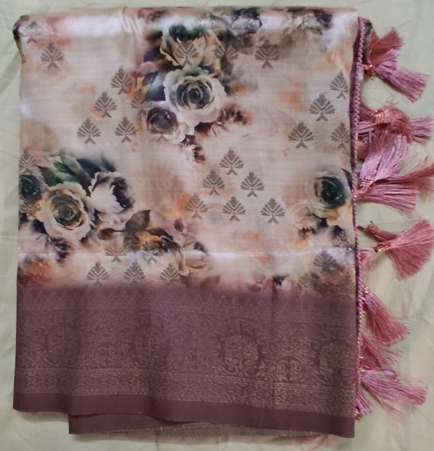 Make a statement with this luxury Brown Raw Silk Saree. The rich color and intricate Digital Print guarantee all eyes are on you. Buy now at VSK Home Market.
