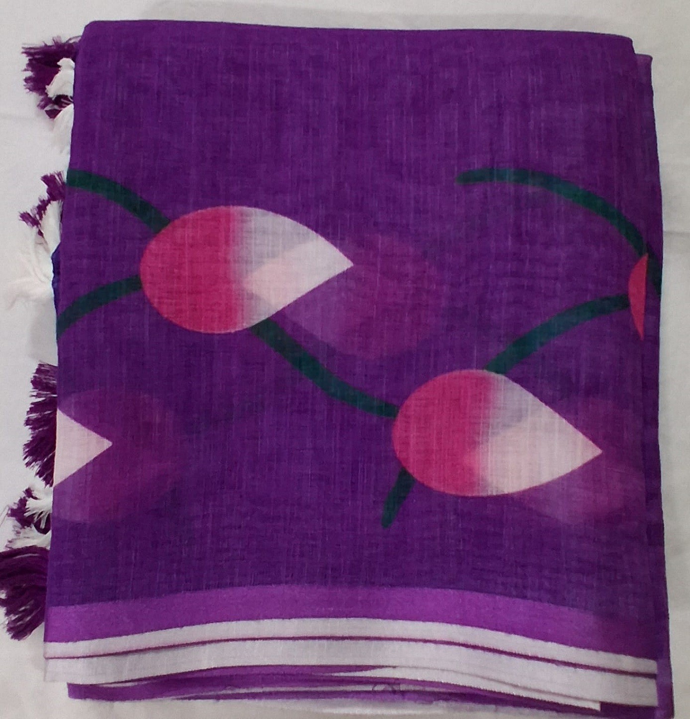 Discover the perfect blend of comfort and elegance. Our soft cotton, purple Lotus design saree is a masterpiece of subtle luxury. Includes blouse. VSK Home