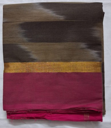 Elevate your ethnic wardrobe with our Brown Colour Ikat Pure Cotton Saree. Perfect for daily wear or special events. Includes blouse. Buy online at VSK