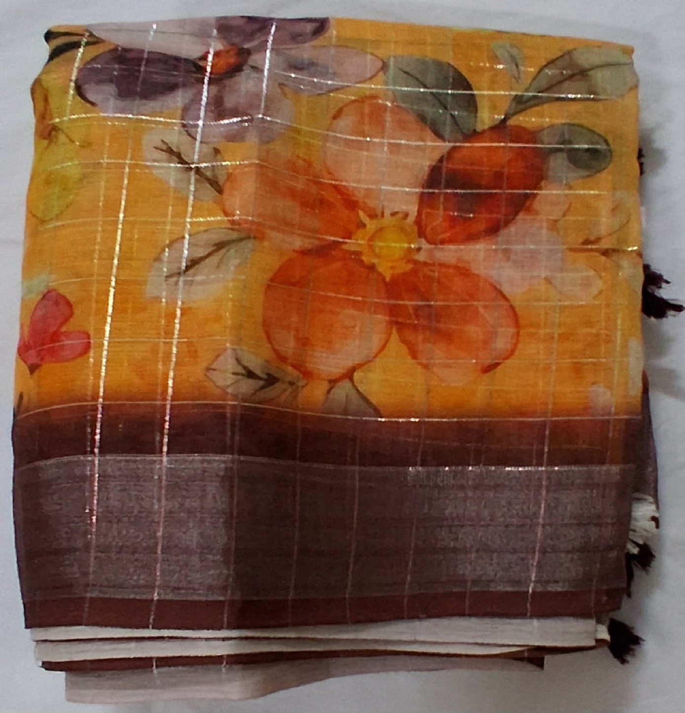 New Arrival Brighten your wardrobe with this beautiful Yellow Colour Saree from the Premium Collection. This fancy design comes with a coordinated blouse.