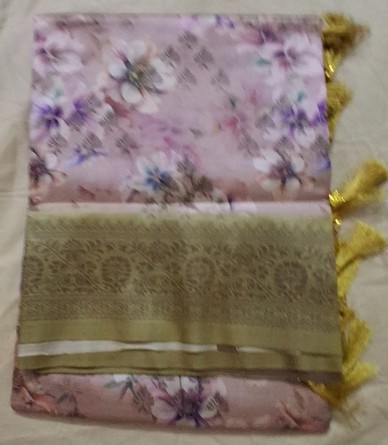 Stunning Olive Green Raw Silk Saree with intricate digital print and border. Complete your look with the included blouse. Buy online at VSK Home Market today.