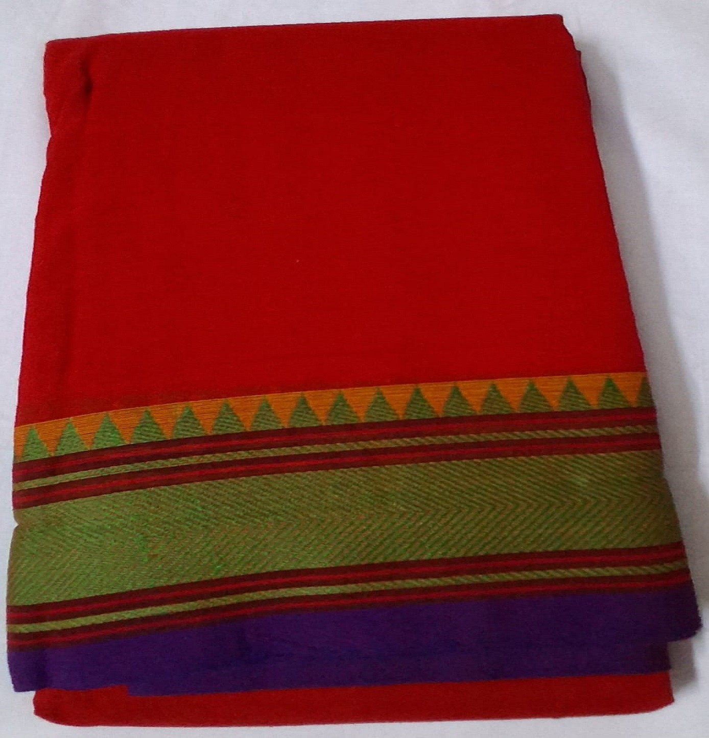 Experience ultimate comfort with our Pure Cotton Saree from VSK Home Market. The gorgeous Indian Red hue and simple plain border offer timeless sophistication