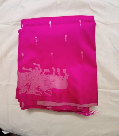 Experience the luxurious feel of Reliable Cattle Silk. This exquisite Pink Saree with dazzling Silver Butta is soft, durable, and comes with a beautiful matchin