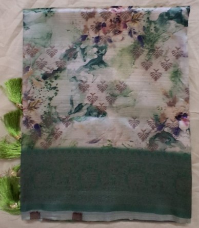 Elevate your style Buy the premium Signature Raw Silk Dark Green Saree with Digital Print, Blouse, and Border from VSK Home Market. Perfect for special occasion