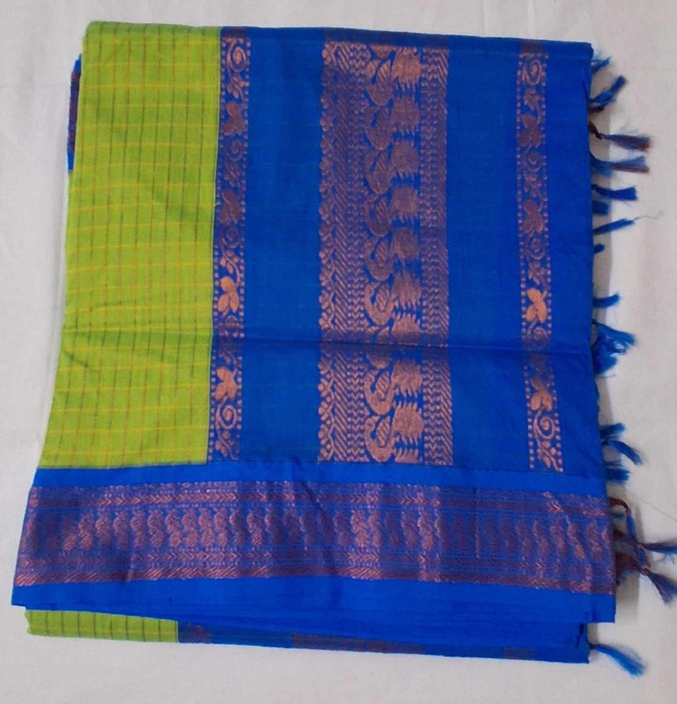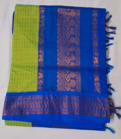 Add the gorgeous Green Checks Kalyani Semi Cotton Saree to your collection. Lightweight, vibrant, and includes the matching blouse. Experience quality