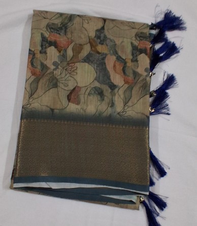 Elevate your style with the VSK Home Market Gray Raw Silk Saree. Features exquisite Vintage Threadwork Edge details. Perfect for special occasions. Shop now.